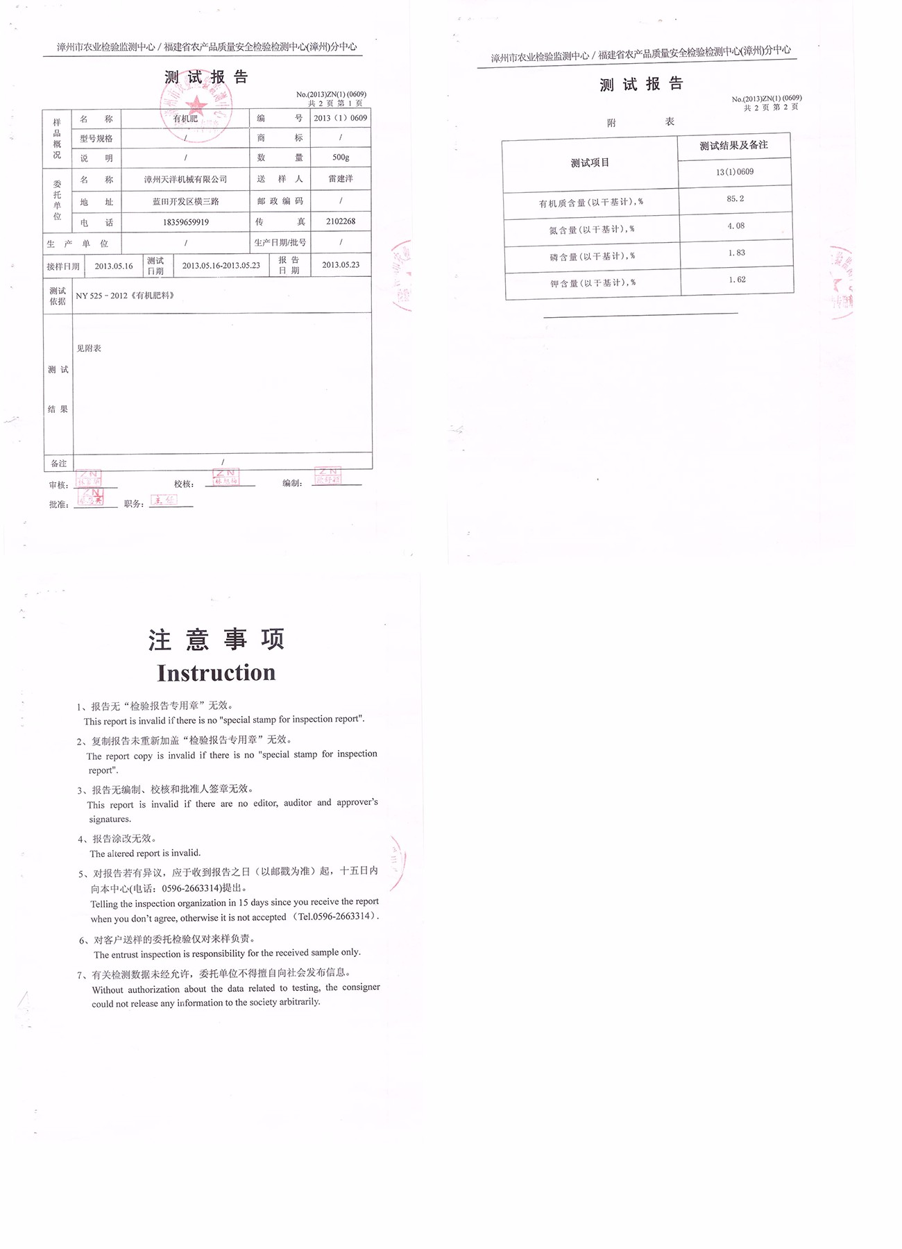 漳州市農(nóng)業(yè)檢驗(yàn)監(jiān)測中心/福建省農(nóng)產(chǎn)品質(zhì)量安全檢驗(yàn)檢測中心(漳州)分中心測試報告--有機(jī)肥檢測