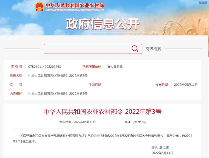 近日,農(nóng)業(yè)農(nóng)村部發(fā)布《病死畜禽和病害畜禽產(chǎn)品無害化處理管理辦法》(以下簡稱《辦法》)。